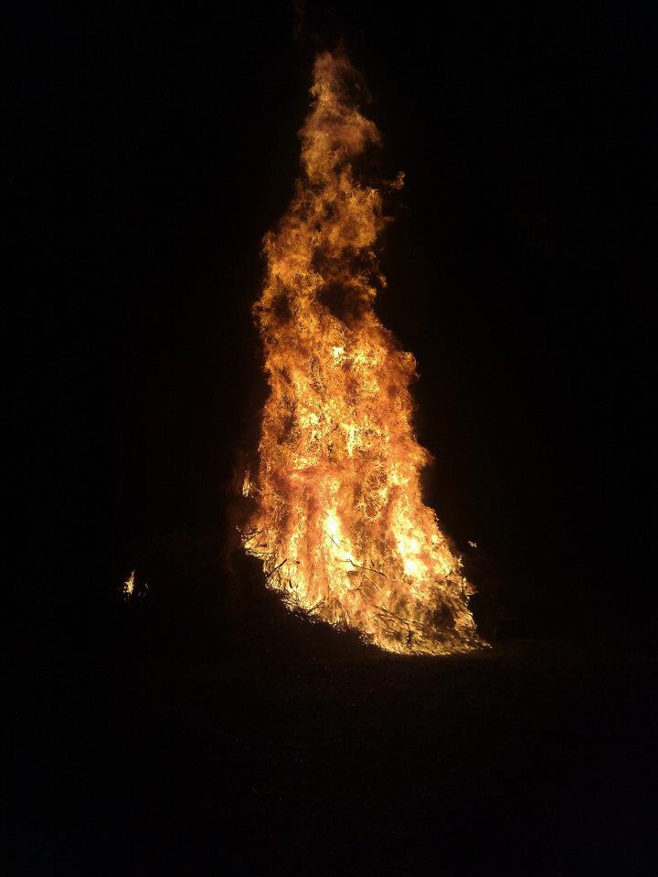 May 2nd was Peyton’s 18th birthday, and we planned a bonfire for her. We’d been piling up all of the crap we couldn’t use from the garden redesigns and tree trimming etc. The pile ended up being quite impressively tall, but I didn’t think it would burn that well. It was damp and much of the material on the pile was green. I expected it to smoulder, and maybe take the entire night to burn.