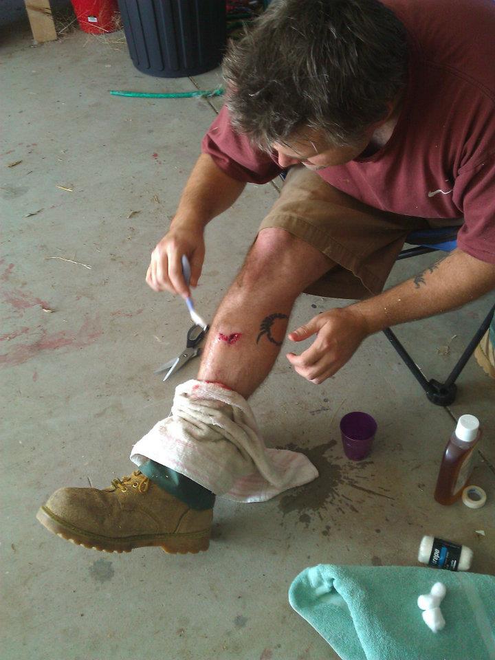 It split my shin across the bone, and was nice and deep. I cleaned it up as best I could, and dad and Linhda made me go to the hospital. It took all of two stitches and some glue to fix it up, but I made sure from the doctor that I’d be able to finish up on the wood when I got home. I also had him show me how he did the stitching, and it looks super easy. I’m determined to stitch myself should this ever happen again…