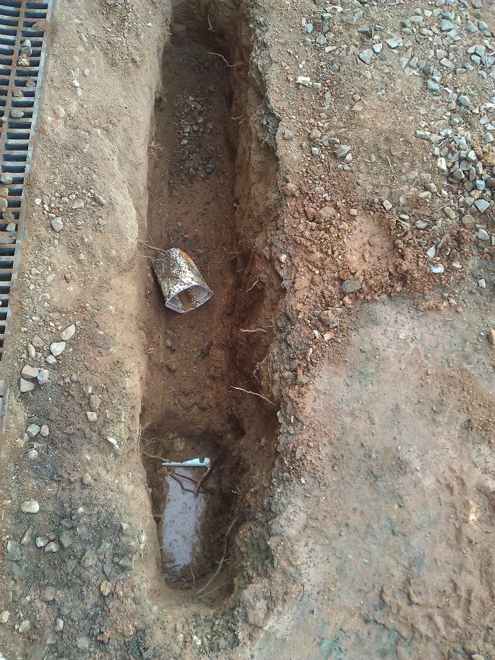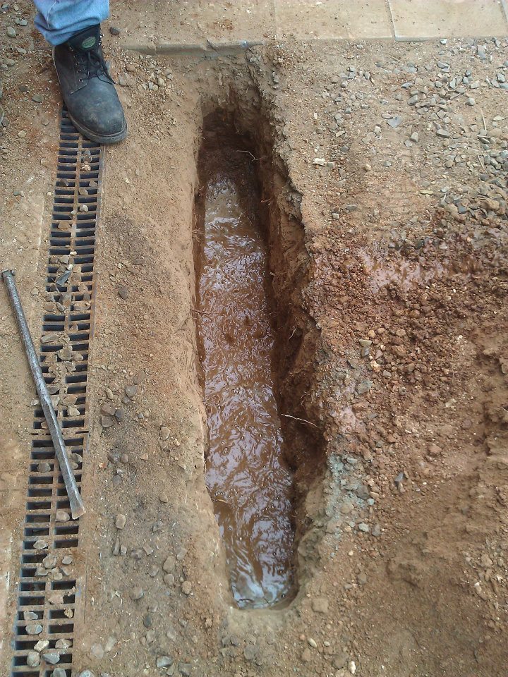We’d noted some water in the chook run and thought it was rain run-off from the roof of the coop. Some investigation showed that it was actually a split pipe within the foundations of the big shed. The foundation is really quite high back there (the block slopes down that way), it had cracked and split the PVC pipe in the process.