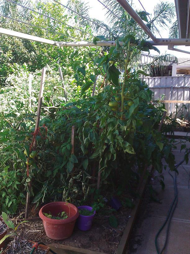 Tomatoes 2 Published January 3, 2013 at 612 × 816 in Finding Permaculture! ← Previous Next → I ended up having to tie the tomatoes to the clothes line.