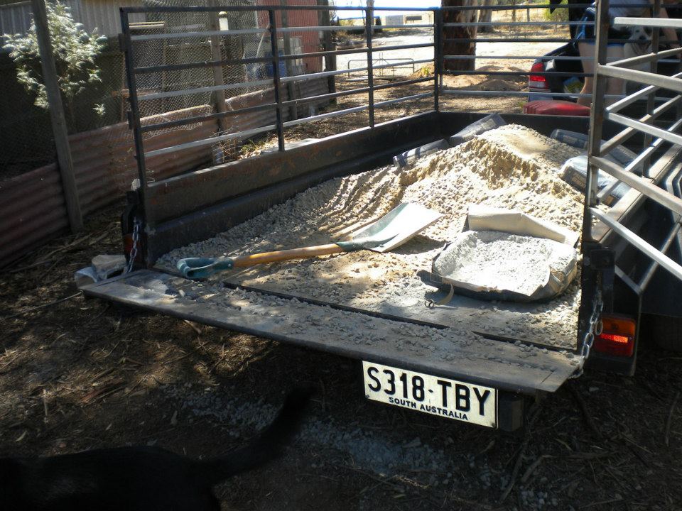 Wet mixing the cement in the hole was always going to be painful, but I completely underestimated the magnitude of that pain. It was a half-hour or so of the heaviest digging and was not fun. A week later we found a cheap cement mixer on gumtree.com, spent an hour fixing it, and are now ready to do the cement pads for the other four runs.