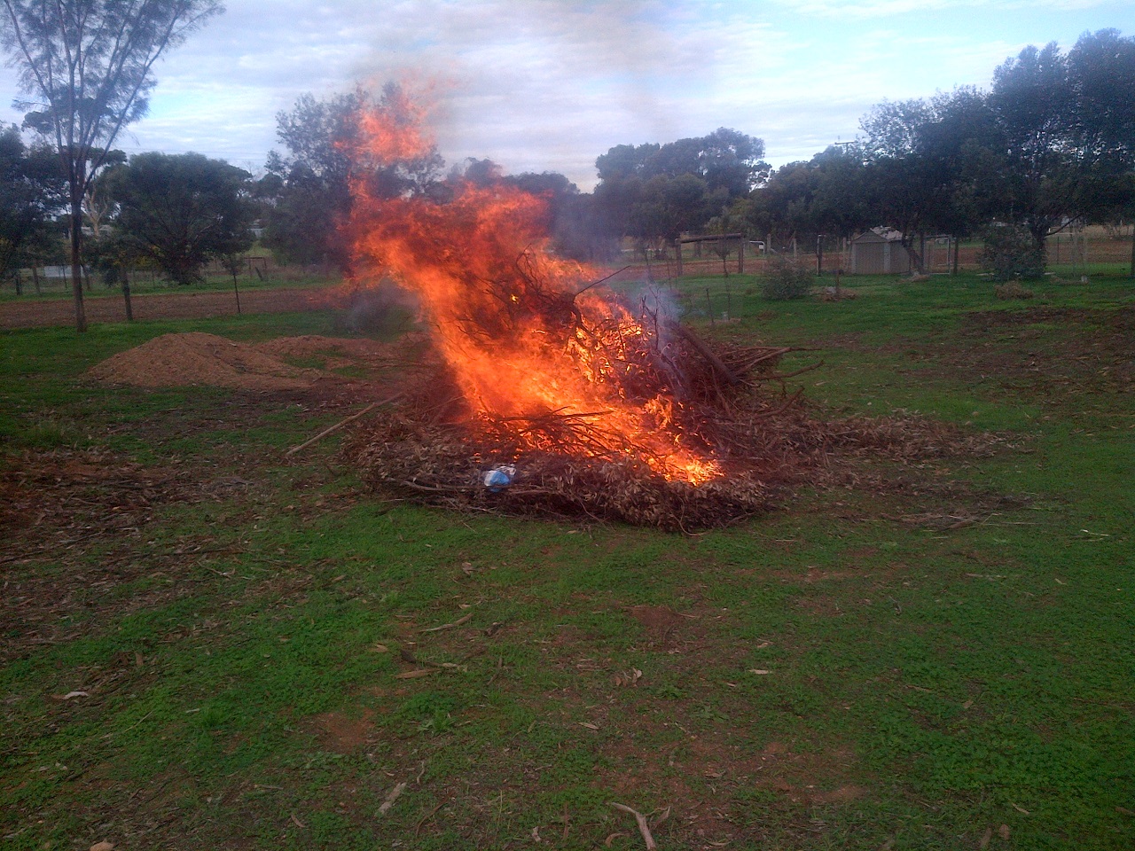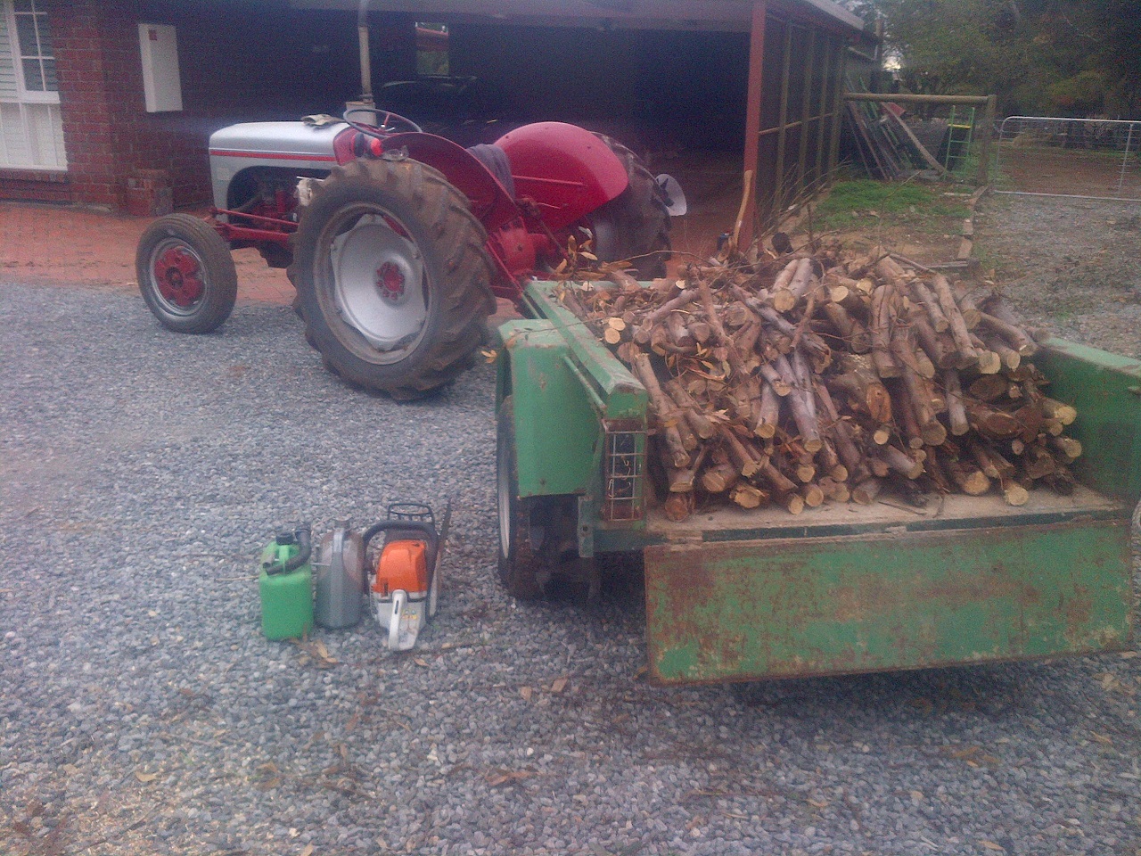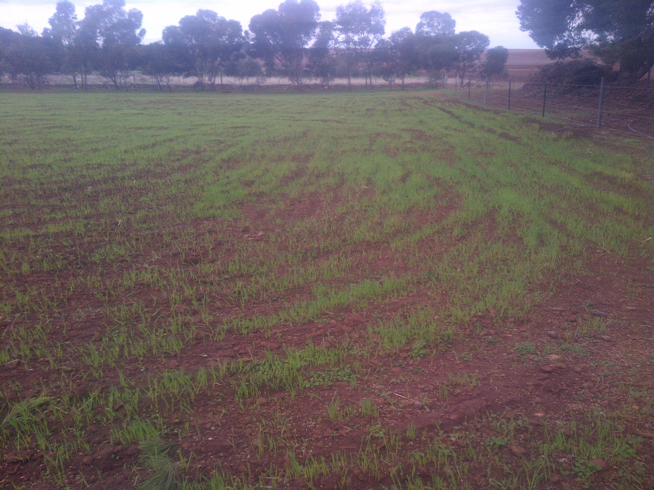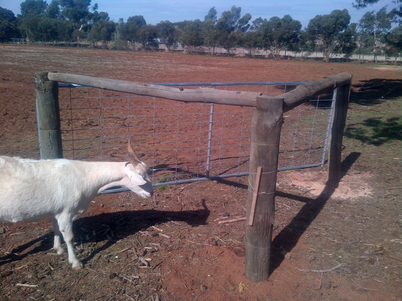 Anyway, we have a right-of-way running along our eastern border, but it was taken up almost entirely with a row of trees. There was a double fence, though the outside one had parts that were literally over 120 years old and it was unserviceable. The inside fence was relatively new, and had to come down and move a couple of feet inwards. The row of trees, which numbered a couple-of-dozen gums of maybe 10 years old and probably 5 or 6 smaller ones, also had to come down.