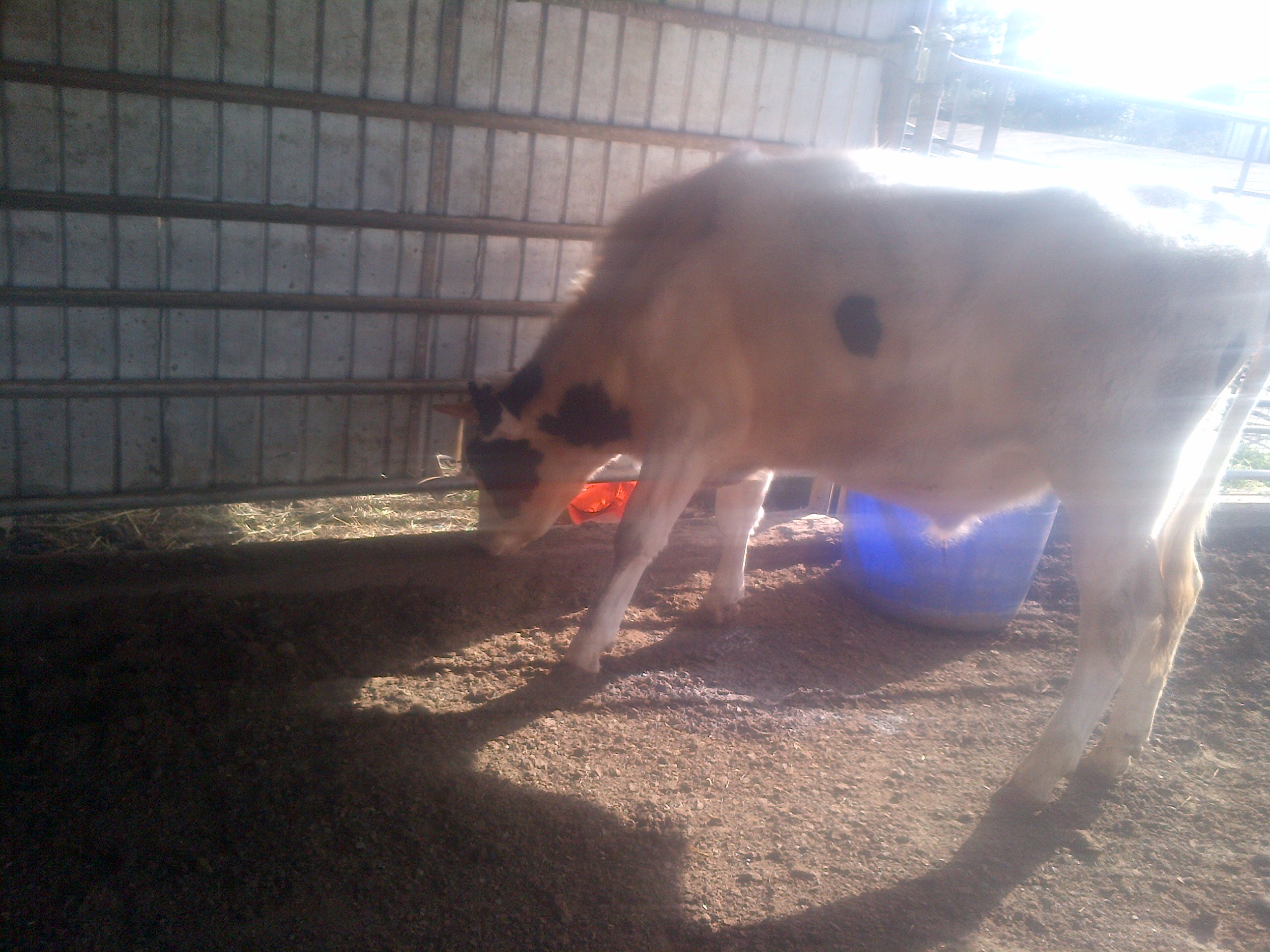 We took the older of the cows, Fillet, to “The Other Farm” at the end of the month. He was around 14 months old, which is at least 2 months, and probably 4 months, earlier than we wanted. However, with feed as expensive as it was, and with another cow and a pig almost ready, it was sensible to have him done early.