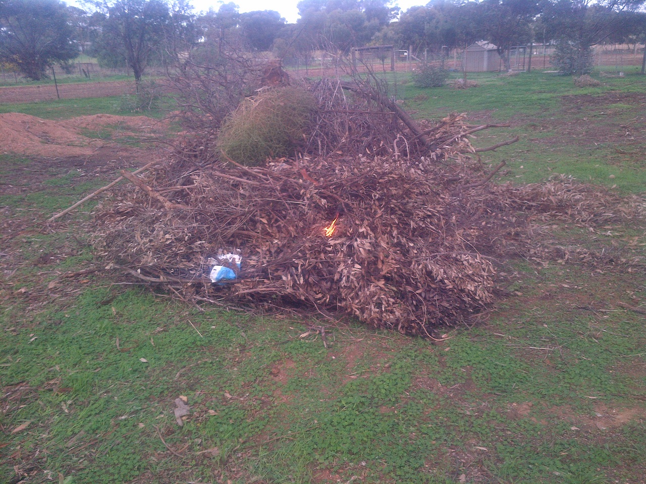 As always, we reused everything that we possibly could. We got maybe 5 tonnes of wood from the trees, along with some ancient strainers from the old fence that burned beautifully. We also managed to salvage a heap of droppers from the old fence, and we reused all of the materials from the inner fence to reinstate it in July.