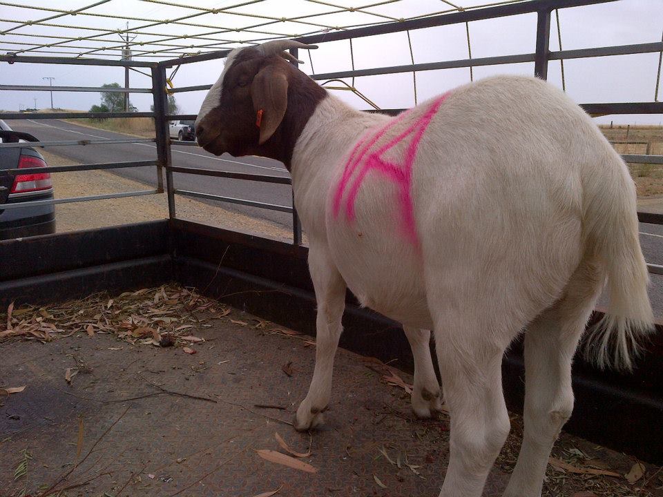 • Picked up our latest goat, Howard, from “The Other Farm” yesterday, and one of the butchers carried out two boxes full of meat. The conversation was a little awkward: