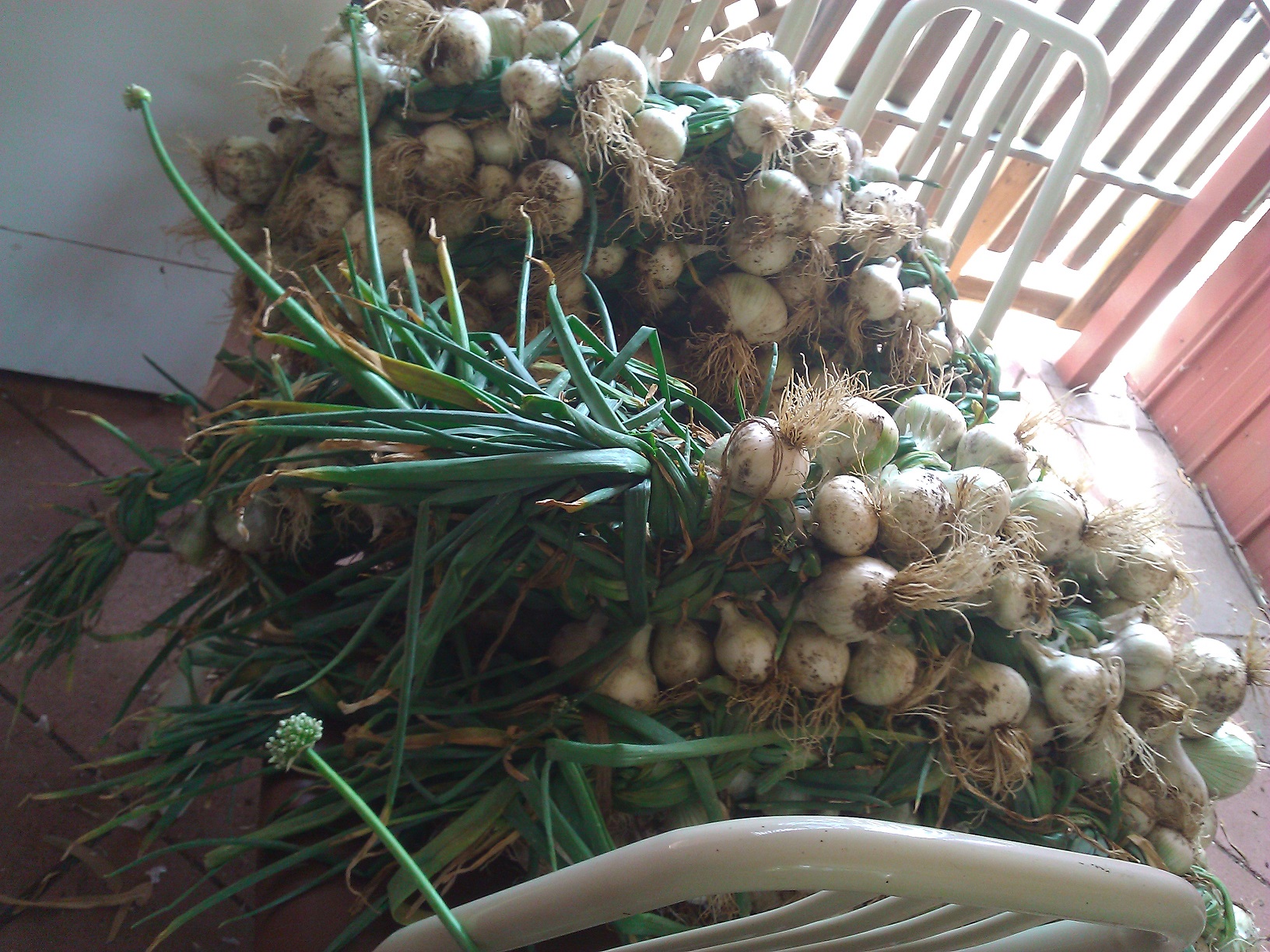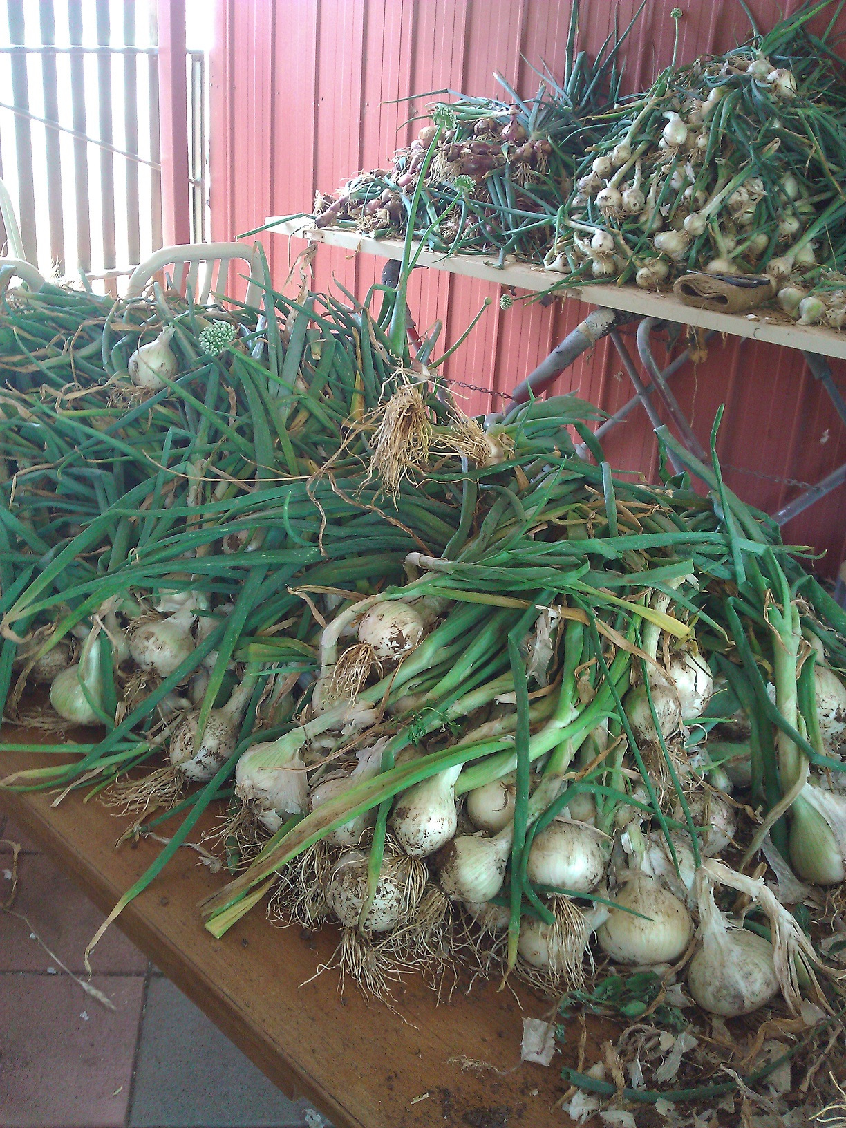 We had a huge allium year, as evidenced by our garlic harvest last month, which taught us a valuable lesson about harvesting garlic in dry conditions.  We continued this with our onion harvest in December.