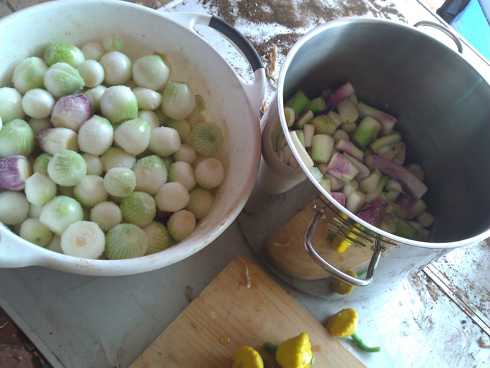 This is about a third of the pickling onions, salted and ready for pickling tomorrow.