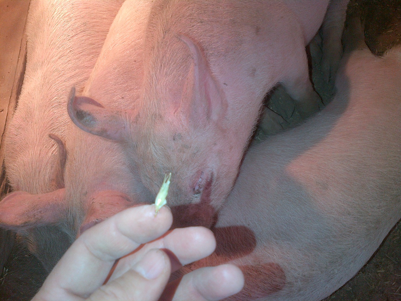 This morning I’ve picked 4 rye seeds from 4 different piglets. They lay there as I rub their bellies, let me pick mud out of their eye, pry their eyelids open, and claw out buried seeds. There’s probably another Farm Lesson in there about tame piglets…