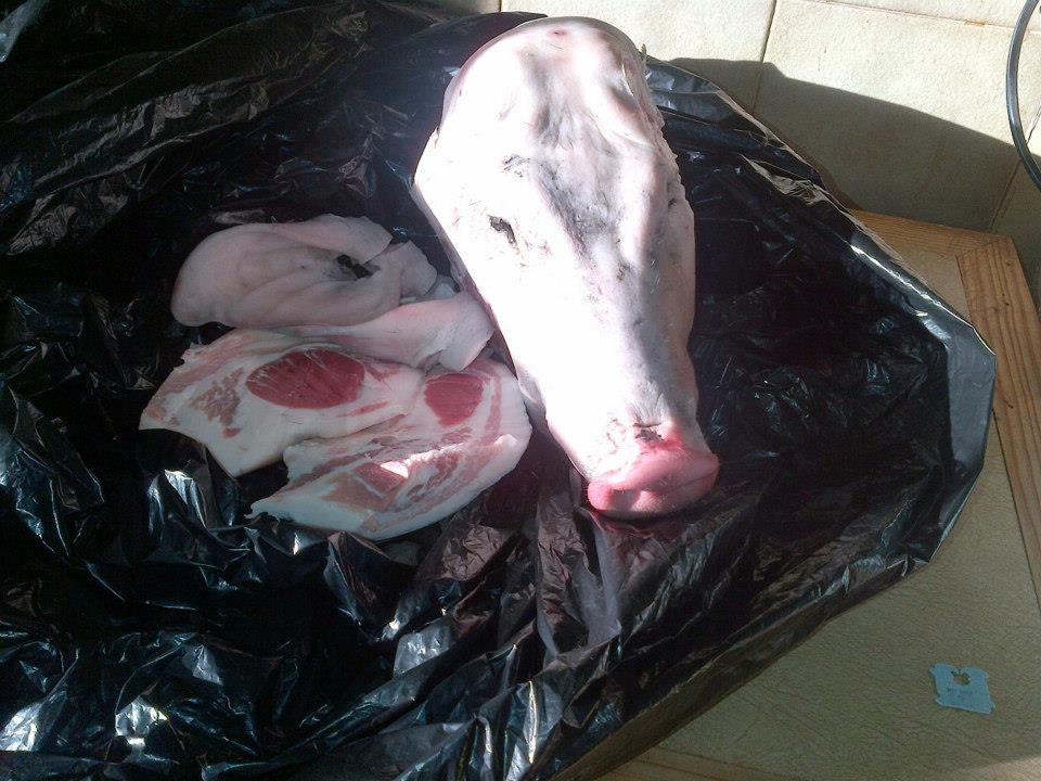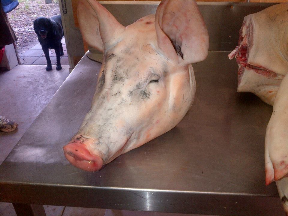George’s head with ears and cheeks removed. I also scrubbed his ears out with a toothbrush.
