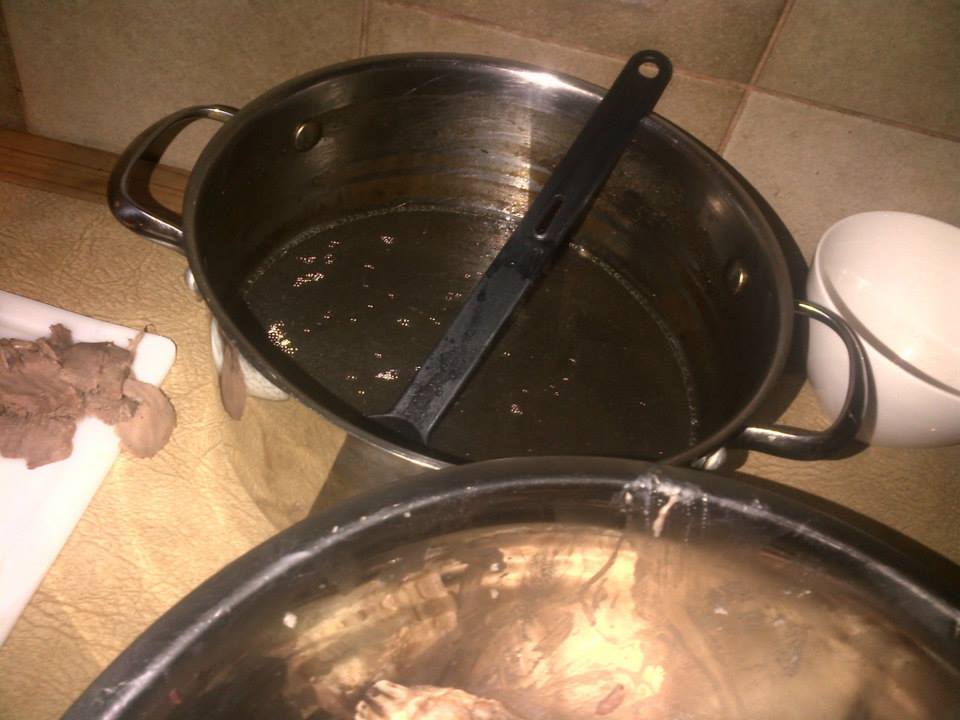 The pate and brawn happened over the couple of days after the spit-pig. I’ve been keen to try these for a while, as they are a whole step-up in our aim to use the entire animal. The offal doesn’t go to waste here, as we make them into dog food. However, I’d much rather use at least some of it for human consumption if at all possible.
