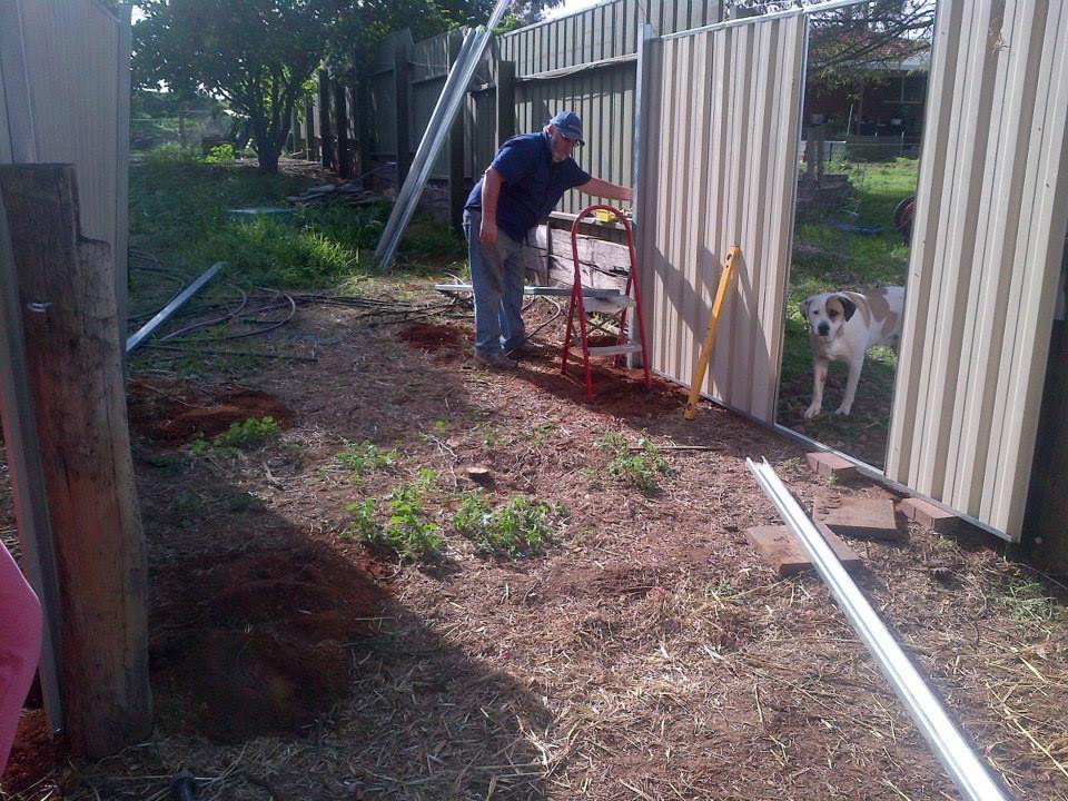We managed to score a heap of seconds shed panels and dad bought lengths of C-channel at the same time. We wanted a shed that we could access from our back garden, rather than having to traipse through any of the paddocks. With that in mind, we took down a few sheets of tin from the very end of the fence in the south-western corner of our garden.