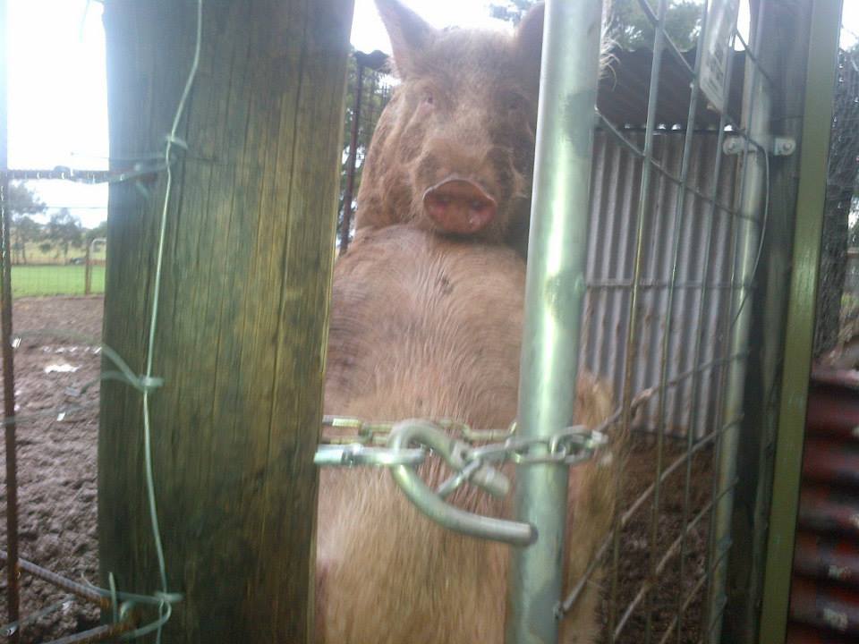 This was actually a big relief for me. I’m quite attached to Honey and Smoked, but we really can’t afford to keep a gilt who can’t make babies. That’s true if you’re talking a commercial or just a hobby farm situation. Full grown pigs eat a heap and take up a lot of space, and our little 3 acres just can’t support unproductive pigs. I was resistant to the idea of making Smoked a “chopper”, which is what they call smallgoods pigs, but had almost talked myself into the idea. Smoked making bacon actually saved her bacon, and saved me from having to make a very hard decision. That pun was also fully intended.