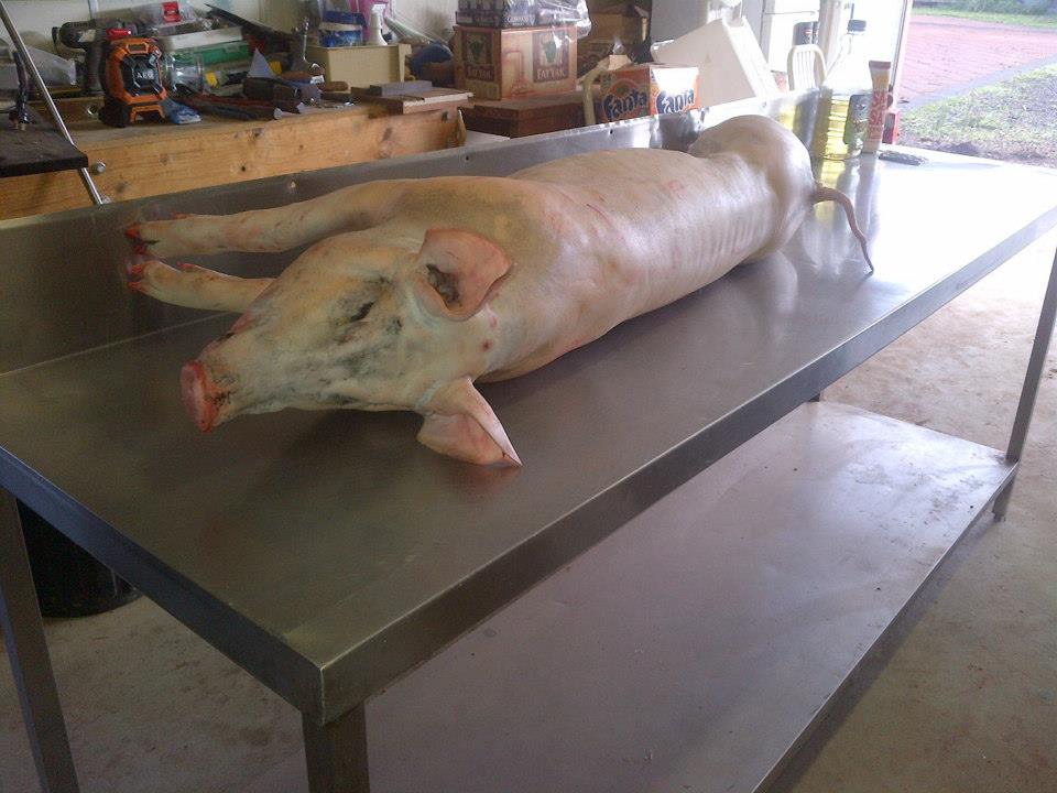 George was a little long, and so we took his head off so he’d fit better on the spit. In reality, he probably would’ve fit whole, as they shrink a fair bit in the cooking. However, we were quite keen to try and make brawn from the head, and so had decided to take it off anyway.