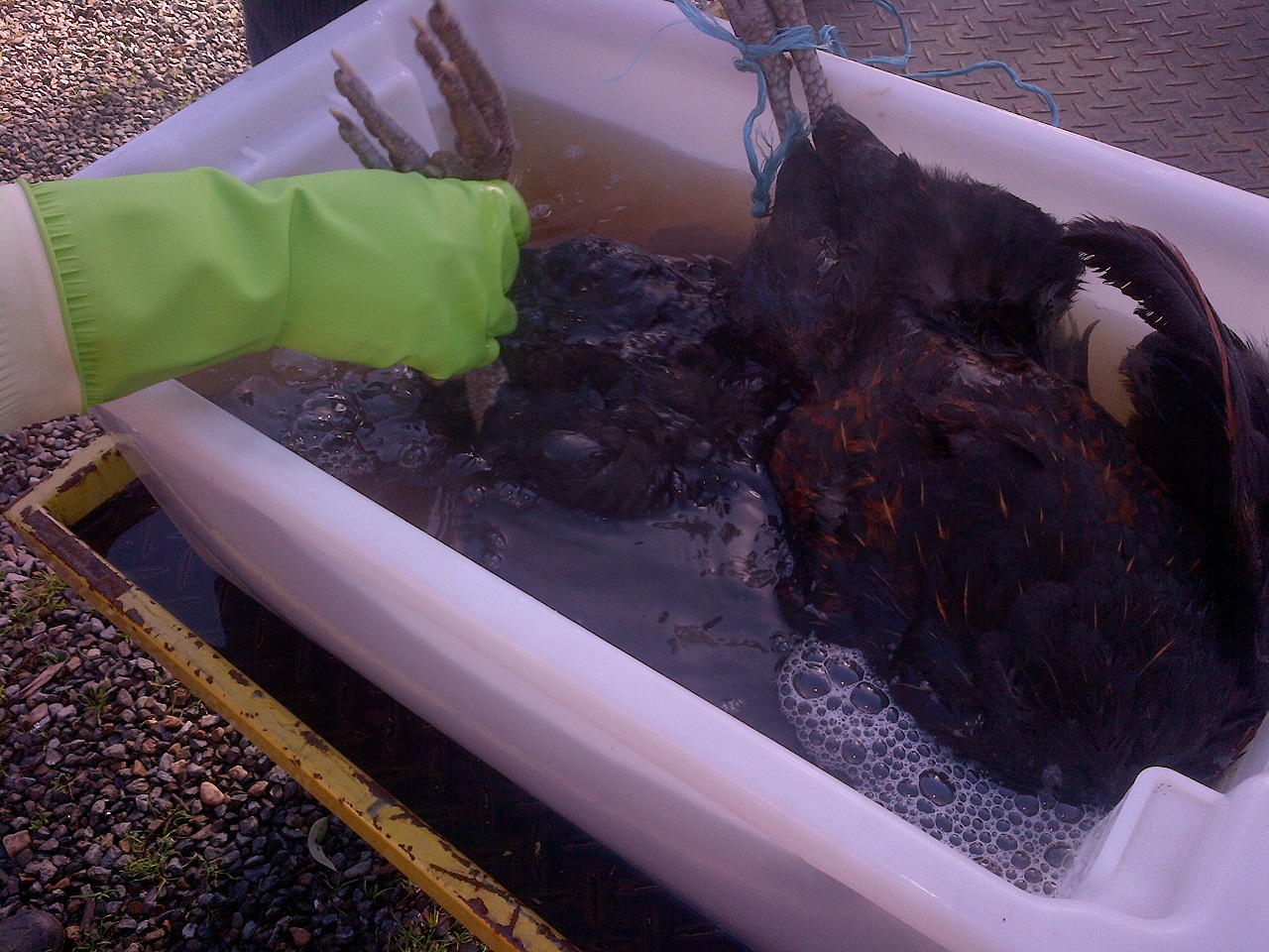 Doing your own chooks is super easy though. We purge ours first, putting them in a large aviary for 24 hours with free access to water but no food.