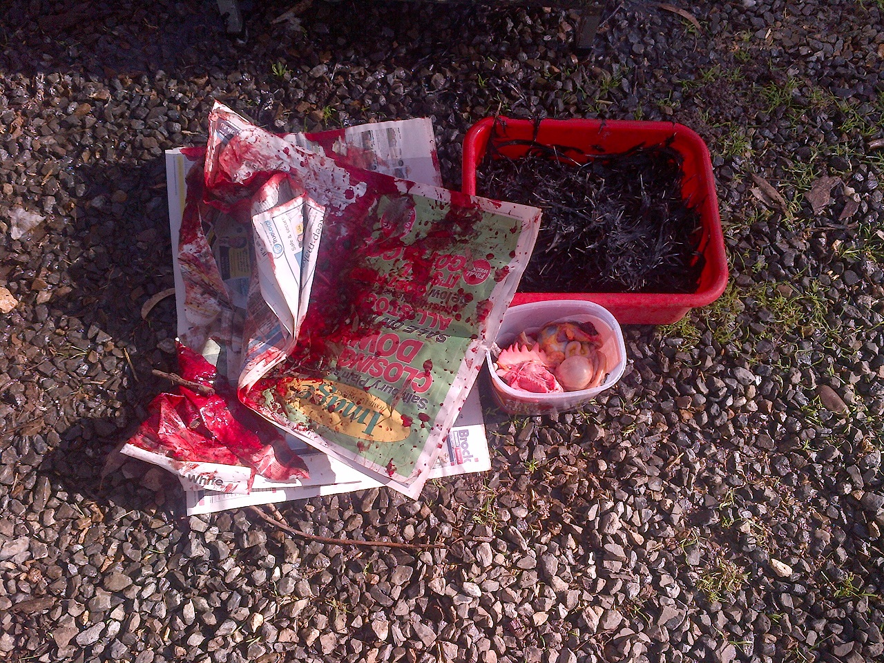 Starting off the meat chook posts with how to process them probably makes no sense, as you need to grow the fat buggers first. However, we’ve had a shot at processing them twice now, the latest time in early July, 2014 (last weekend). Our technique has already changed a heap between those two times, and I think we’ve got it worked out. I want to capture all of that now while it’s still fresh.