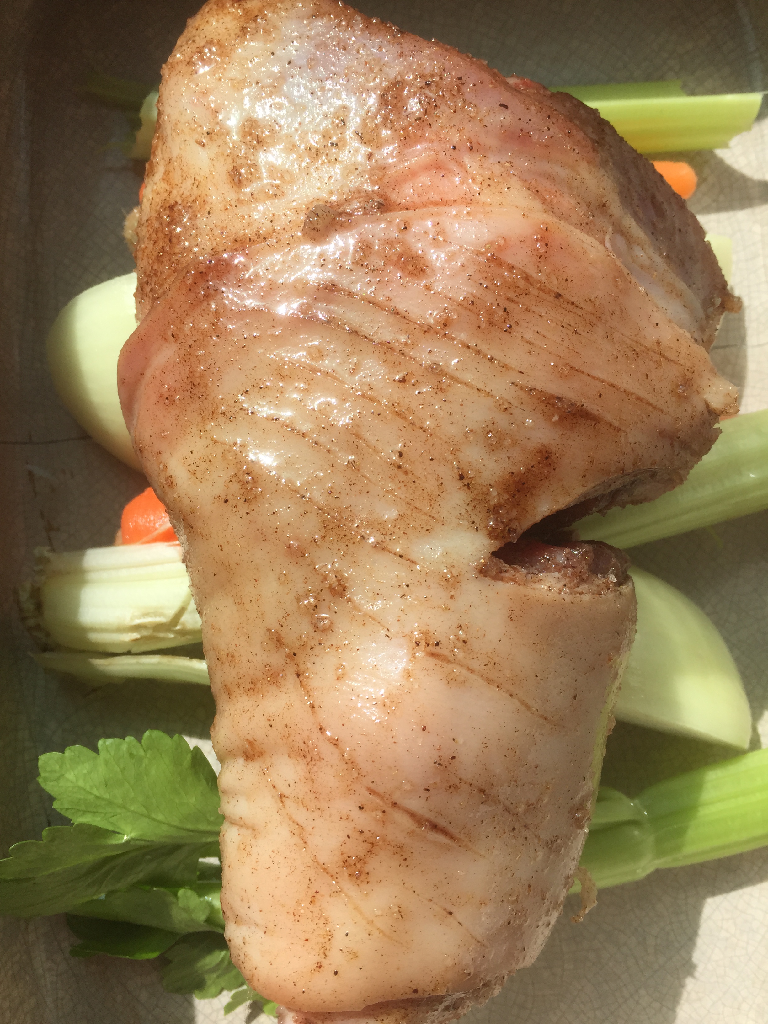 We have an abundance of bacon in our freezer, mostly in giant 1kg chunks. So our bacon is often cut into slightly smaller giant chunks. How you cut your bacon will depend on how you like your bacon. I like to use the streaky/belly bacon because the fat renders down and I’m always afraid the short back/eye bacon will be too dry.