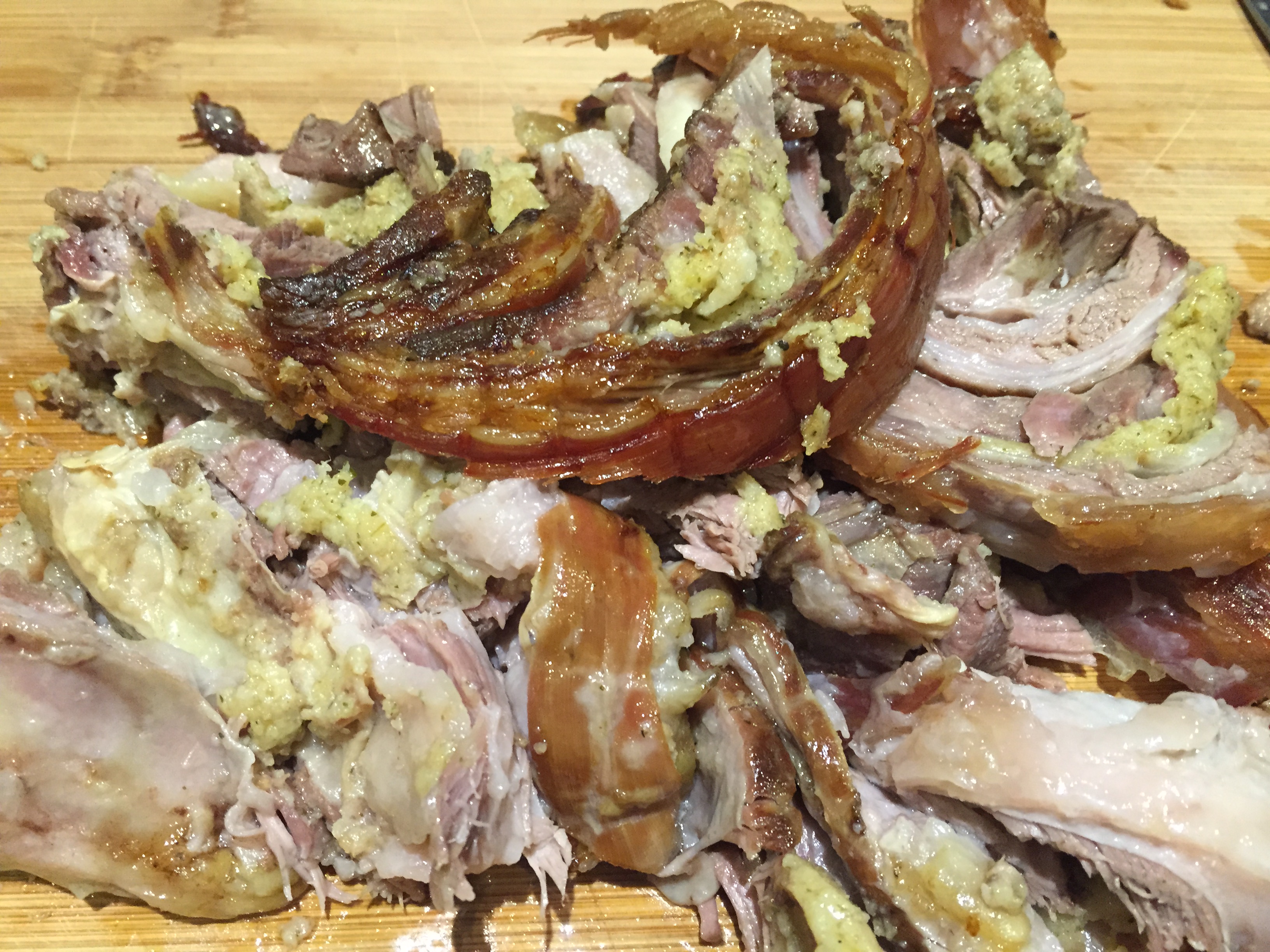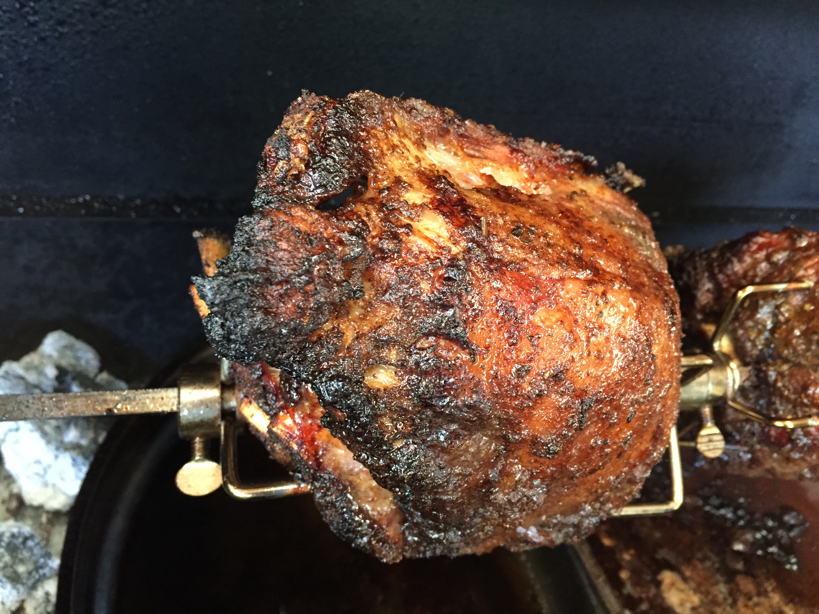 We’ll start with the meat. I had two 1.6kg lamb legs, they were the top part of the leg, so a little less meaty than lower down but still just as tasty. If I’m strapped for time like I was, then I’ll coat the meat in olive oil and Nostimini. Nostimini is our go to BBQ seasoning, I want to say it’s heavy on the cumin and oregano. If I have time to marinate overnight, I’ll do it in olive oil and a combination of fresh herbs and spices, still heavy on cumin and oregano. My lamb had a nice layer of fat on it and probably didn’t need the oil but I went with it anyway out of habit more than anything and I only had 45 minutes of marinating time.