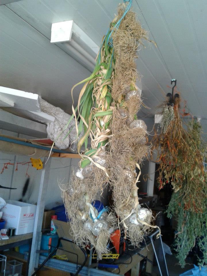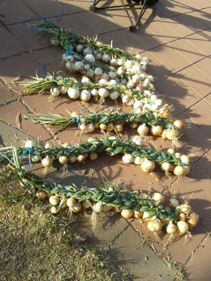 The garlic was ready a full month ahead of what I was expecting. We had some super-hot days, and I think that finished them off. Linhda plaited them like a champ!
