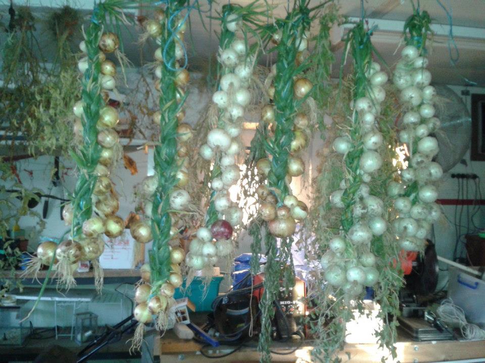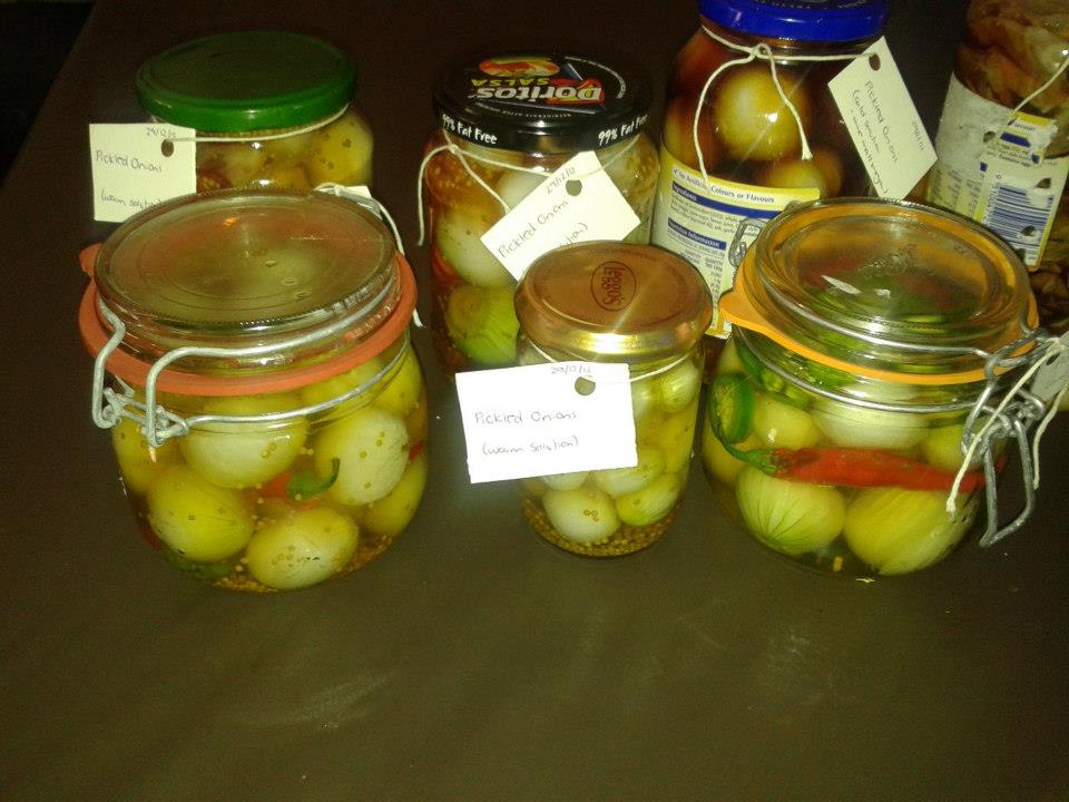 I pickled the smaller onions after our harvest, and experimented with solutions and things like chillies. YUM!