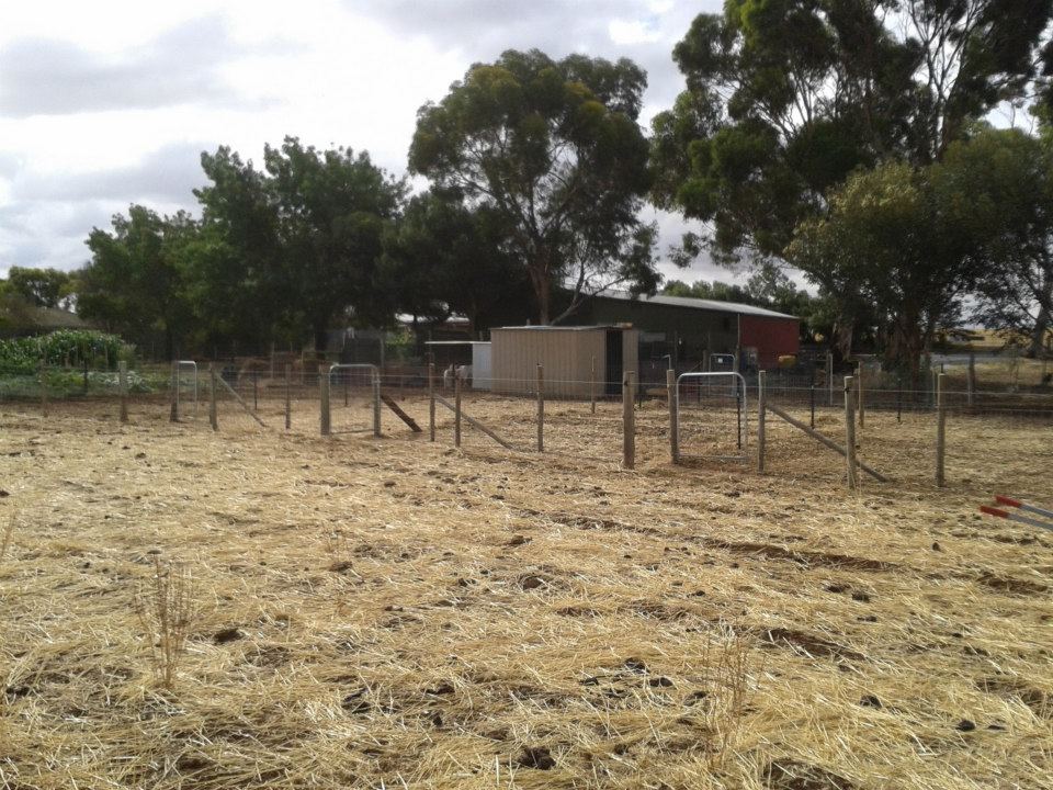 The big success story here is the race that we have running along the southern end of the yards. We designed it so that the gates that empty into the race butt up against posts, meaning they block the race when open. We can open up a couple of gates and easily herd animals from one yard to another without any fuss at all. We can also put our stock ramp at one end and herd them into the trailer. This had been the aim of the design all along, but it was all theoretical until we actually tried it.