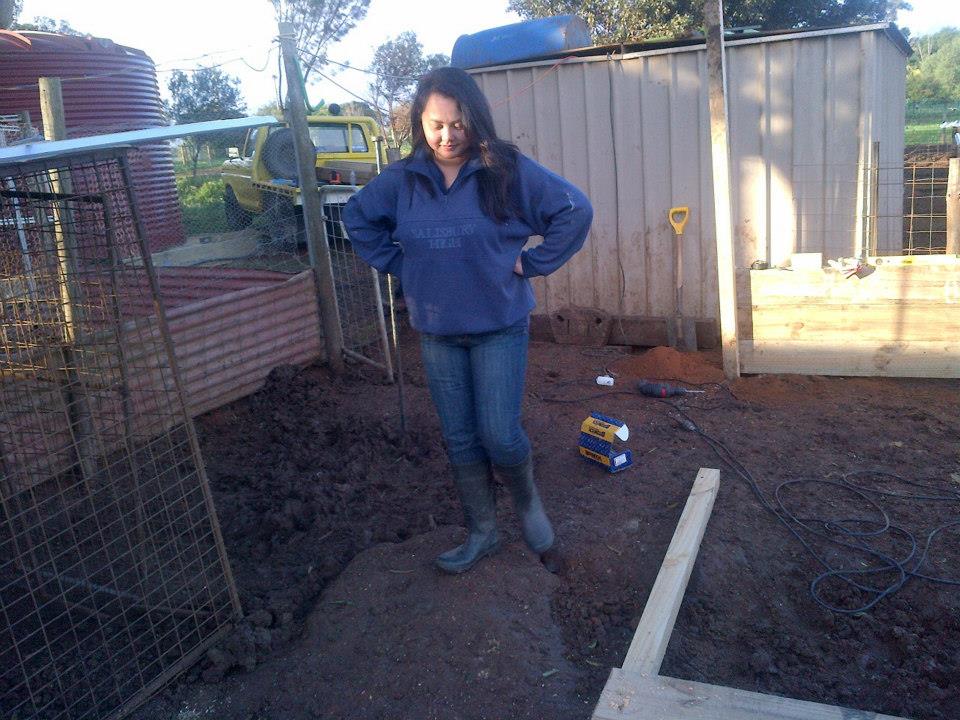 The real challenge with this shed, and with everything we build here, is that the land slopes towards the south and west. With the shed, we started on the high part, dug in a little way, and made everything level with that. By the time we were at the opposite corner, we were significantly higher than the ground level. We ended up having to modify things a little to make sure we had enough post in the ground. We used a couple of lengths of the 50mm x 75mm along the back to fill in the gap down the bottom. We also reduced the overall height of the shed from the plan 2.1m to 1.8m. It ended up working well, and I actually think it’s a little better being a little lower.